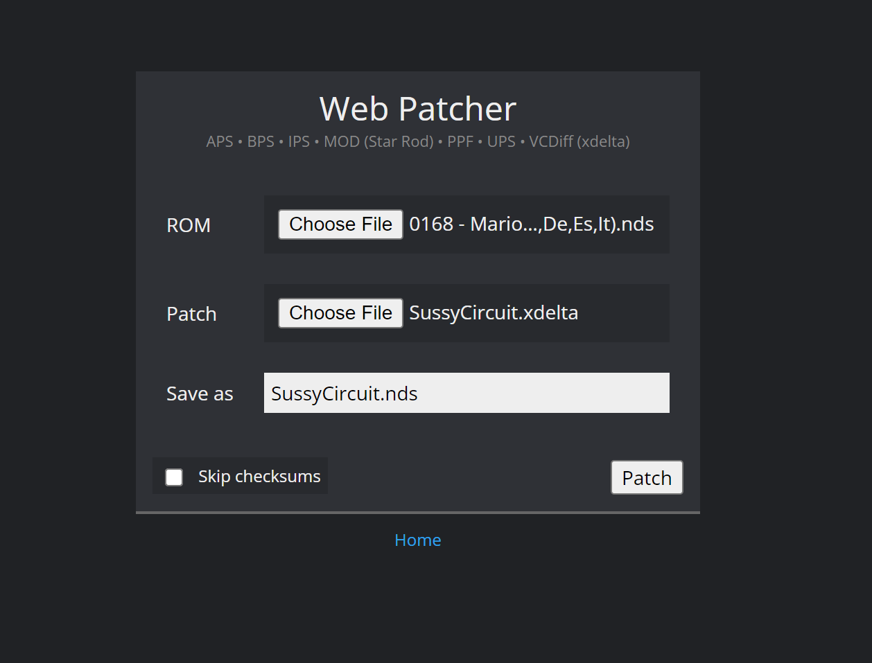 6. Now click Patch And place the final file into your flashcart or emulator